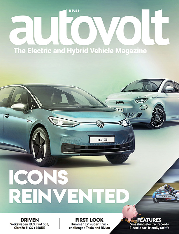 Features include the incredible achievements of Voxan Motors with its Wattman electric motorbike that broke a remarkable 11 records. And we take an introductory look at electric car-friendly energy tariffs. Innovation is coming thick and fast in the world of electrification, and in this issue we cover the submerged battery technology courtesy of Faraday Future and investigate Hyundai Motor Group’s E-GMP platform that’s set to promise 300-mile range and 18-minute charge times.