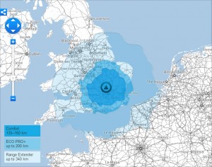 Of course, the map is an elegant way of trying to alleviate ‘range anxiety’ and so the same visual map graphic can be applied whether you have a BMW i3 or any other electric vehicle with similar range possibilities, such as the Nissan Leaf.