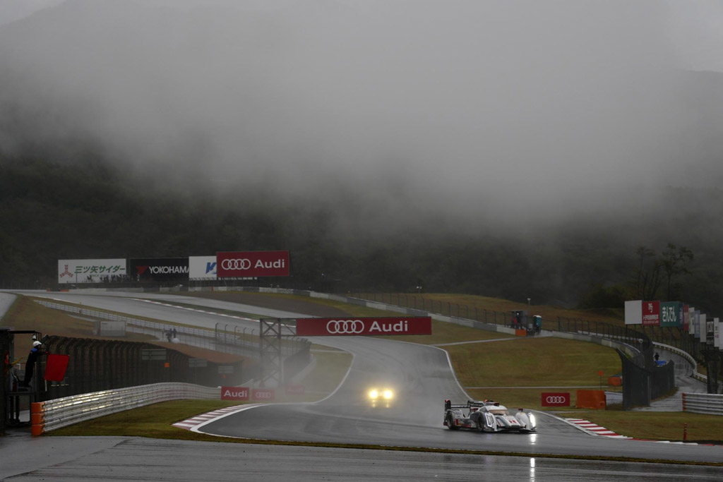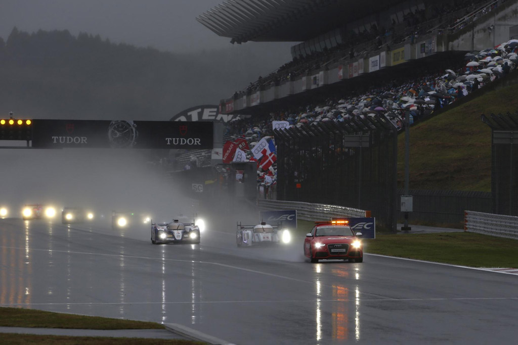 At the sixth of eight WEC rounds, difficult weather conditions prevailed. Steady rain had prompted race control to start the endurance race behind the safety car. But the 4.563-kilometre track at the foot of Mount Fuji was too wet for the race to be released in these conditions, so the stewards of the meeting interrupted the race after eight laps.
