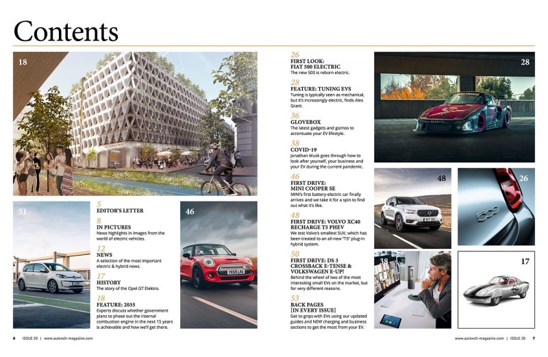 Richard Gooding navigates us through the latest EV news and takes an historical look at the 1971 Opel GT Elektro, while Jonathan Musk takes a first look at the new Fiat 500; now reborn electric. Tim Barnes-Clay drives the first full-electric MINI Cooper SE, and we test the latest EVs from DS, Volkswagen and the Volvo XC40 Recharge T5 Plug-in Hybrid too.