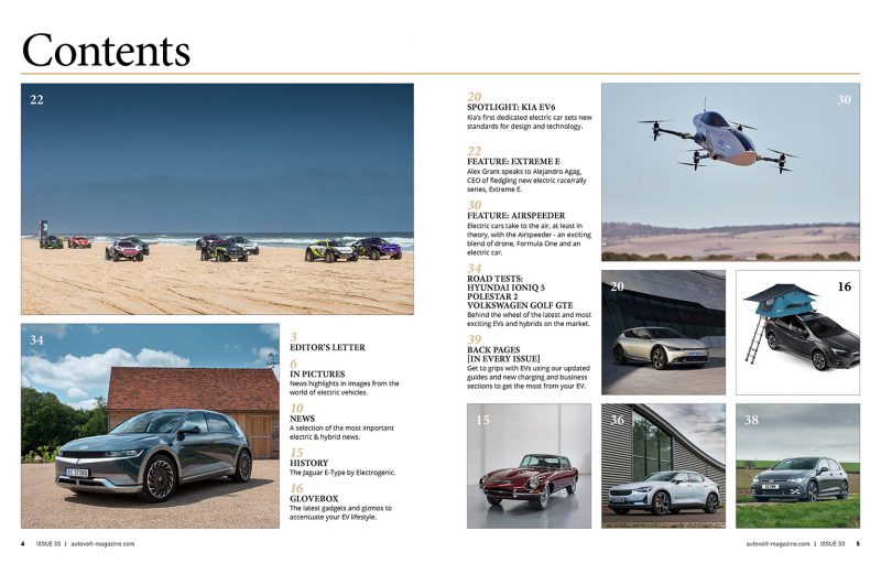 In review, we have first drive of the Hyundai IONIQ 5, a car we focused on in our last issue and notable for its 800V charging ability that sees its battery filled from 10-80% in as little as 18 minutes. We also explore the road with the Polestar 2 and Volkswagen Golf GTE, while our spotlight falls upon the Kia EV6: sister car to the IONIQ 5.