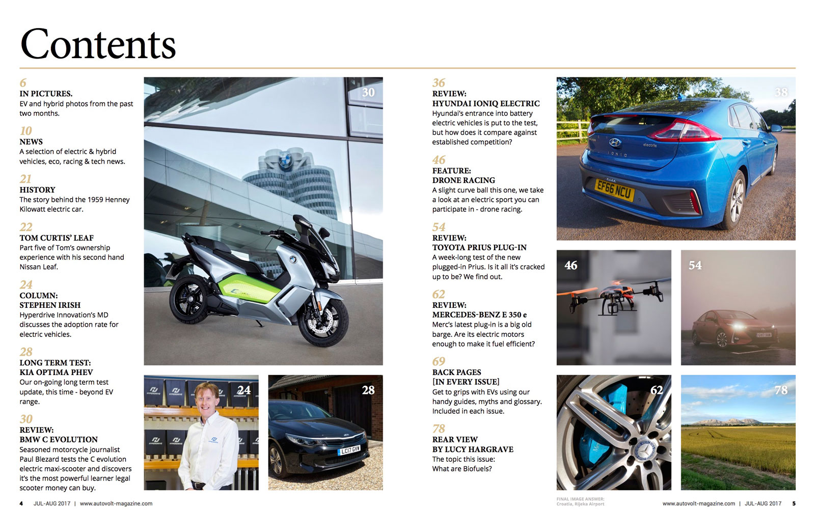 In this, our third anniversary issue, we go a little off piste and introduce you to the exciting world of drone racing. Ever wanted to participate in Formula E but couldn’t because you’re not a pro racing driver? This is the next best thing. It’s fast, furious exciting and – with technology – first person view too. Seasoned motorbike journalist Paul Blezard goes for a ride on the BMW C evolution electric scooter and finds out what makes it so special (it’s the most powerful learner legal bike). In review we have the superb Hyundai Ioniq Electric, Toyota Prius Plug-in and Mercedes E 350 e plug-in hybrid. There are also updates on our long term Kia Optima PHEV, Tom Curtis’ Nissan Leaf (part 5) and our historical car this time is the relatively unknown Henney Kilowatt. Plus, as always, there’s more electric and hybrid news inside.