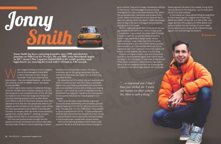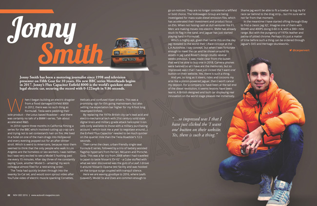 In the latest AutoVolt magazine, we get an exclusive ride in Electric Classic Cars’ converted Volkswagen Beetle EV. Jonny Smith is this issue’s columnist, talking about his Flux Capacitor Enfield Electric, his appreciation of the new Jaguar i-Pace and his ambition to create a retro electric ride. Are electric cars fun? We question why many perceive EVs to be boring while taking a Nissan Leaf out drifting in Milan, Italy.