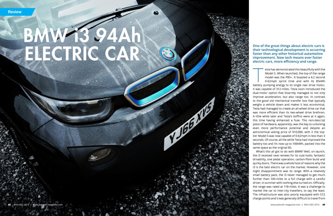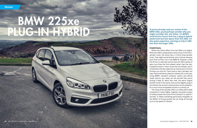 In review we have a trio of BMW plug-ins including the excellent BMW 330e, the 225xe and new BMW i3 94Ah. Tim Barnes-Clay heads to Madrid, Spain to drive Toyota’s new striking crossover, the C-HR hybrid. Our brief buying guide in this issue covers the soon-to-be-classic Tesla Roadster and why it actually makes an interesting used car buy.