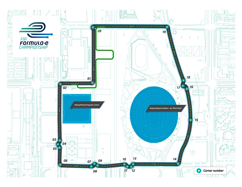 The circuit, which remains subject to final FIA Homologation, boasts an impressive cityscape backdrop taking in both the Beijing National Aquatics Centre and the Olympic Stadium itself. It will see the 20 Formula E drivers tackle a mix of tight left-hand turns – offering late braking and overtaking opportunities – together with twisty chicanes and two main straights. In addition, the track features a unique ‘U-shaped’ pit lane with spectator areas located inside giving fans and an incredible close-up view of the action.
