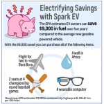 - Enjoy the savings – Chevrolet have estimated that Spark EV can save its owners approximately $9,000 (£5,600) in fuel over five years compared to the average new ICE (internal combustion engine) vehicle – that’s $150 (£95) per month that can be spent on something else.