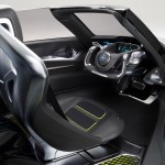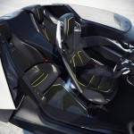 Inside the canopy, the cockpit seats three in a triangular configuration with the driver centre-forward. Seating appointments feature special light and comfortable coverings with yellow fluorescent lines. Amid simple yet edgy interior styling cues, an aircraft-type steering wheel and state-of-the-art instrumentation technology complete the glider-like image. To support maximum EV cruising efficiency, the IT system can display relief maps and atmospheric conditions.