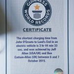 Dr. Jeff Allan and his son, Ben Cottam-Allan from Birmingham have won a Guinness World Record for the Shortest Charging Time driving an Electric car from John O’Groats to Land’s End.