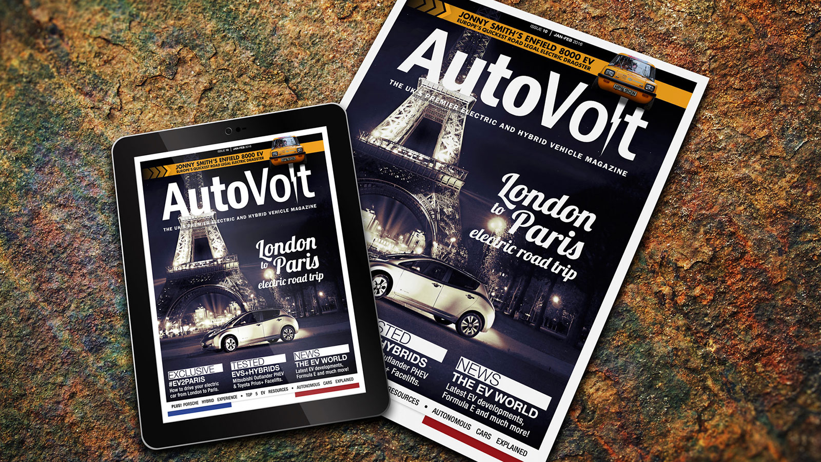 AutoVolt was offered a ride in the Flux Capacitor – Jonny Smith (Fifth Gear presenter) has restored the diminutive Enfield 8000 from a 40 mph classic EV, into an 800 bhp electric dragster! As Europe’s quickest road legal EV, it was one hell of a ride. We also take a look at autonomous cars and their technology, review the latest Mitsubishi Outlander PHEV and Toyota Prius+ facelifts and take an eye-opening drive around Porsche’s Silverstone Experience Centre – plus much more!