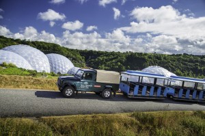 The Defender 110 Pick Up badged ‘All terrain Electric Research Vehicle’ effortlessly tows the four-carriage 12 tonne road train carrying up to 60 passengers on a 6 per cent incline to and from the iconic hexagonal-panelled domes. The vehicle has been designed to perform its duties throughout each day before being recharged over night for the approximate cost of £2.00.