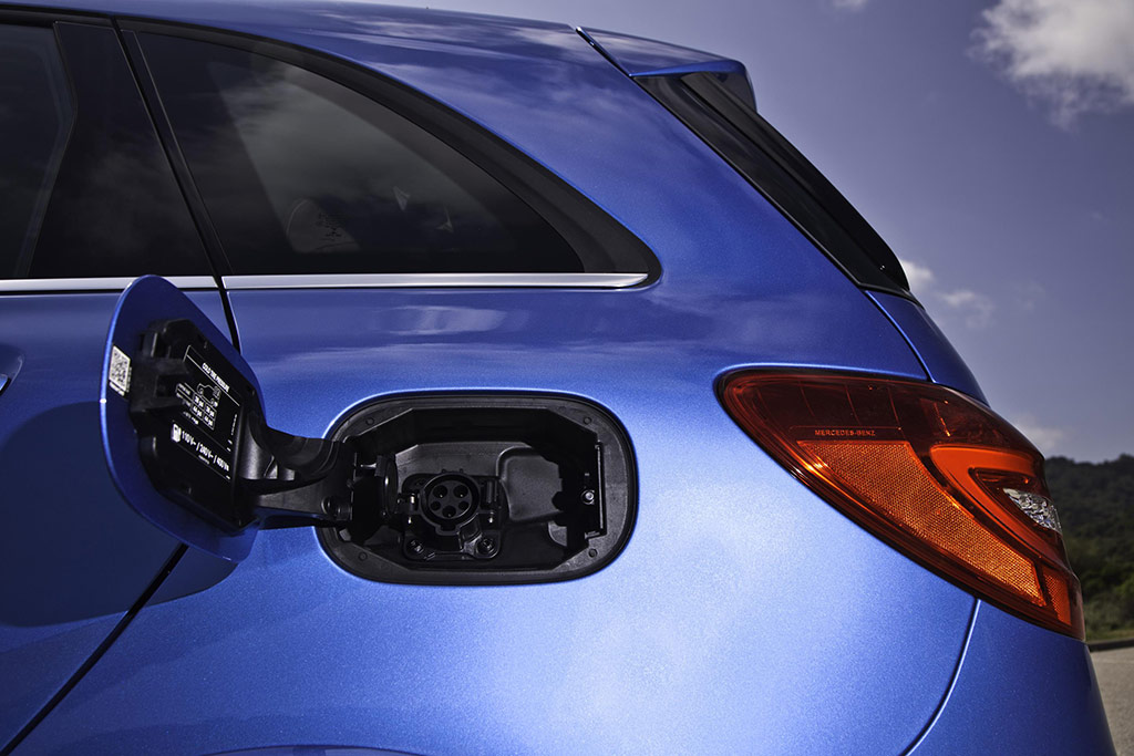 Refined sportiness combined with aesthetic appeal – the B-Class Electric Drive features the self-assured and dynamic styling so typical of Mercedes with powerfully defined lines and finely crafted details. The front and rear sections express the width of the vehicle. This is ensured by the wide, prominent grille and the headlamps, which wrap round into the sides, as well as by the wide rear window, two-piece tail lights and large tailgate with deep sill. A dynamic look is created by door-sill panels and striking bumpers with bar-shaped LED daytime running lamps. The charge socket is inconspicuously installed behind the conventional fuel door.