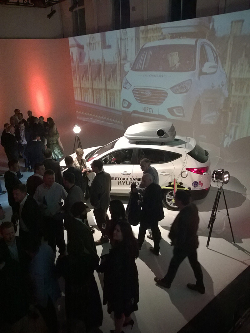 The vehicle of choice was a single Hyundai ix35 Fuel Cell that made light of London’s difficult road and traffic conditions with its excellent electric drive system and lack of range anxiety from its hydrogen fuel cell derived energy. Being a fuel cell vehicle, the only emissions emitted by the ix35 was water.