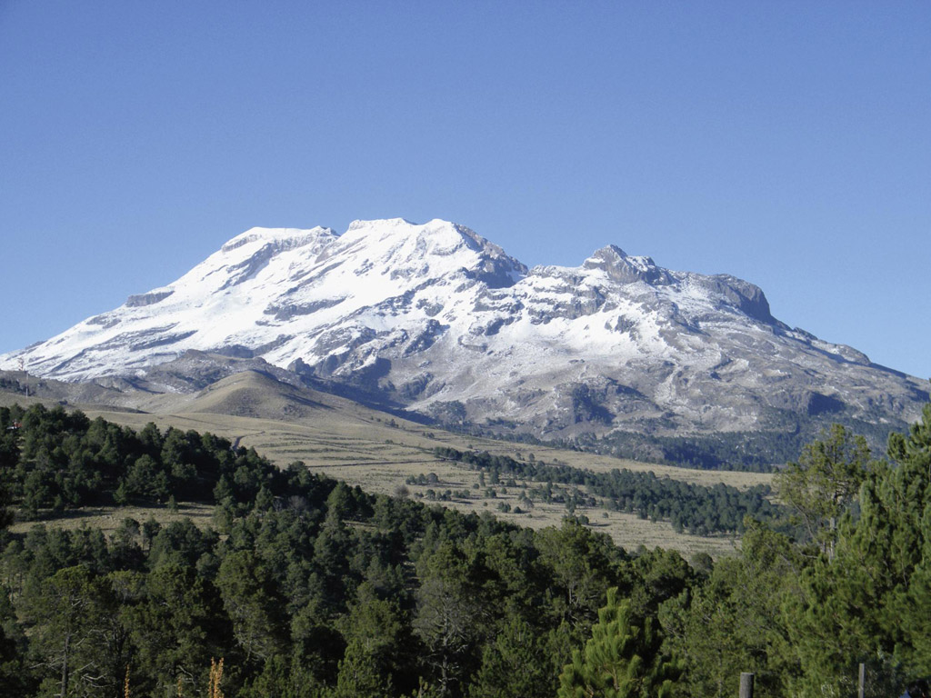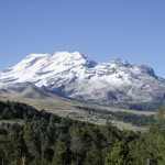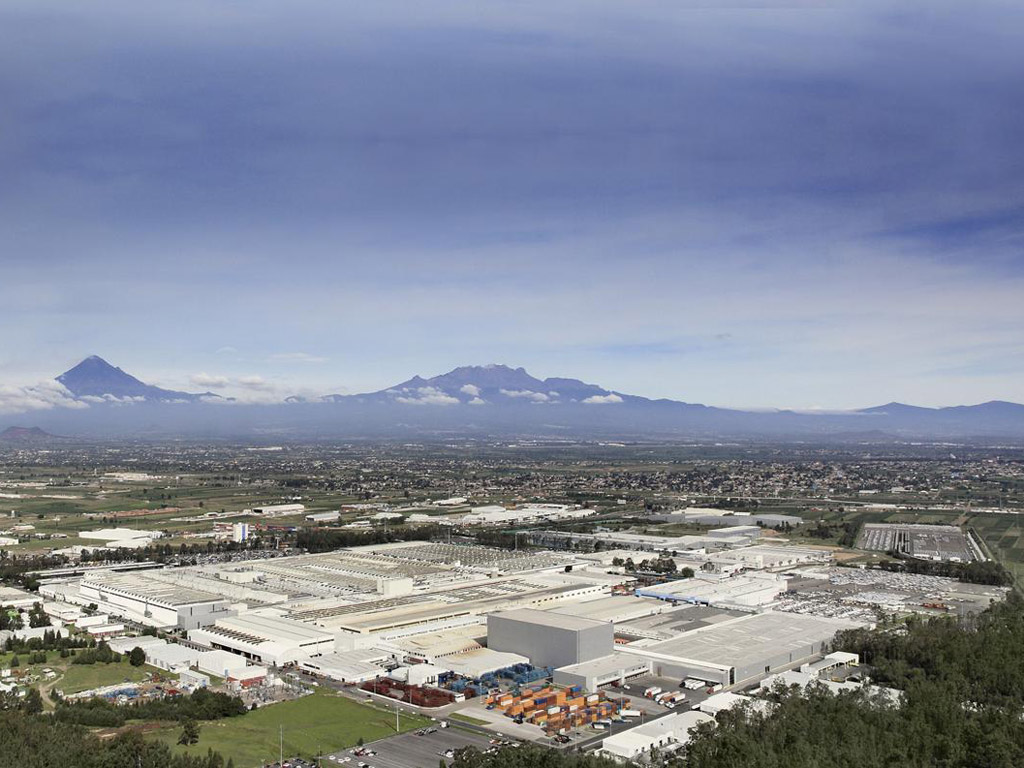 Volkswagen plant in Puebla with the Izta-Popo volcanoes national park