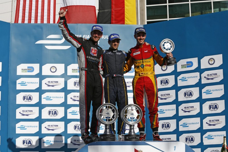 Prost is the fifth different winner in this maiden Formula E season: his name can be added to the list of Lucas Di Grassi (Beijing,) Sam Bird (Putrajaya,) Sebastien Buemi (Punta del Este) and Antonio Felix da Costa (Buenos Aires.) Making the Frenchman’s day even more special was the podium ceremony: handing him his trophy was a “rival” in the form of Virgin Group founder, Sir Richard Branson, while up there to take the team award was the victor’s father Alain.