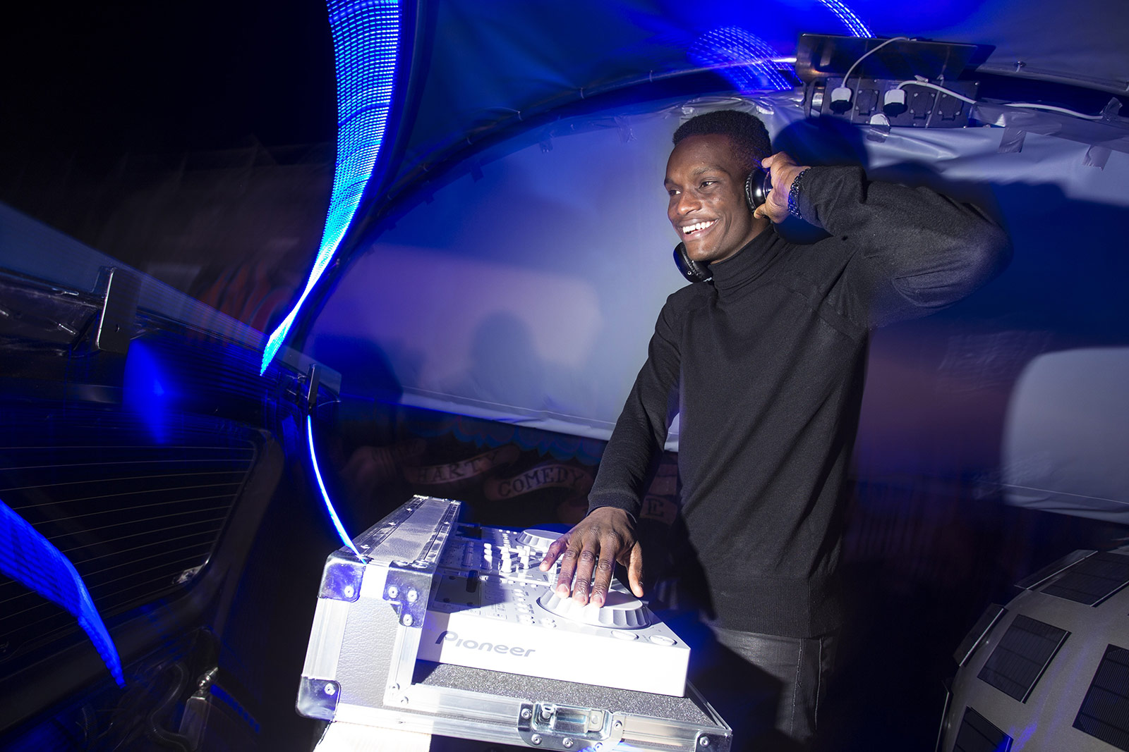 - A DJ booth on the roof with sound system and silent disco capabilities