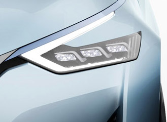 The headlight appears to take design aspects from both the latest 2017 Nissan Micra and some portions, at least, from the Nissan IDS concept – a car that many described as being an early version of a possible new Leaf direction.