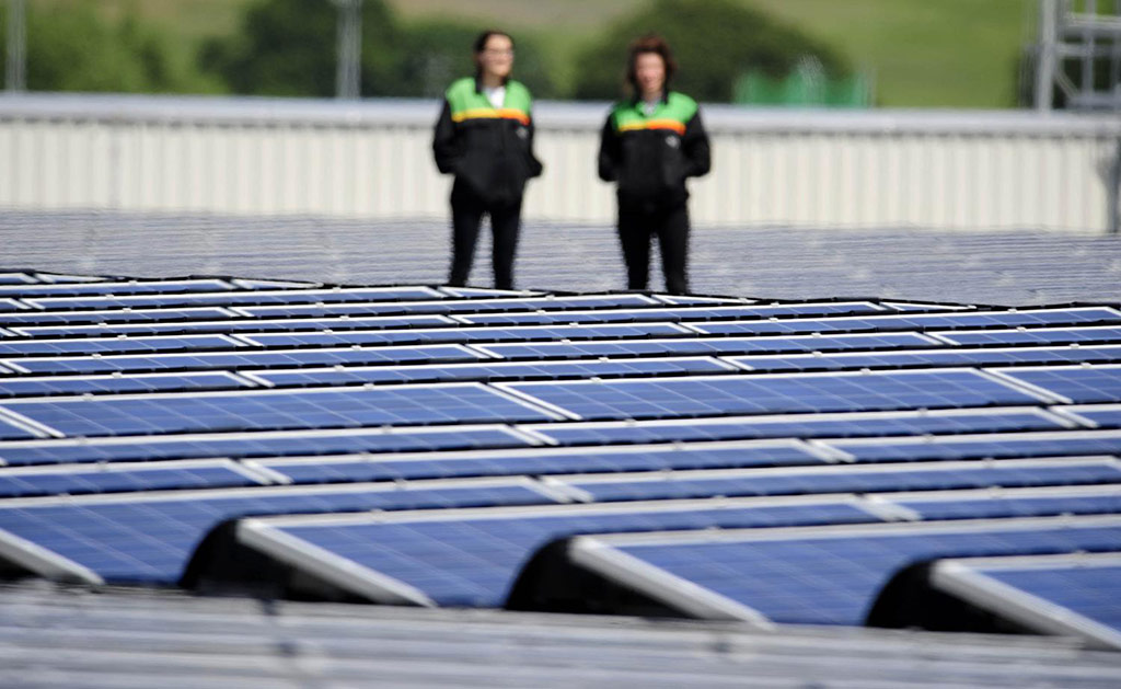 More than 11,500 panels over an area of more than 20,000 square metres have been installed making the roof mounted solar famr one of the largest ever installed in the UK.