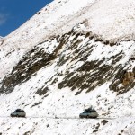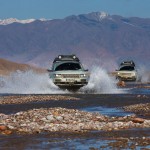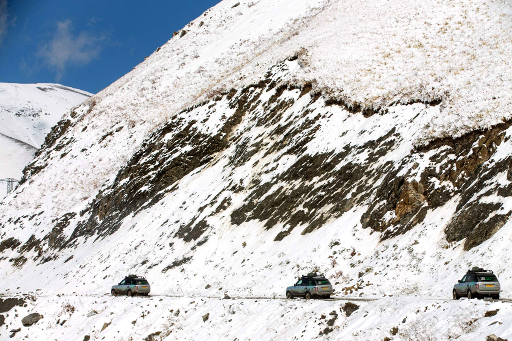 The expedition’s additional test this week has been high altitudes. One day the convoy drove into icy winds above the snowline at 5,875 feet (1,760 metres), looking down on a cloud-layer and soaring eagles. Next day the road climbed higher still, to 11,000 feet (3,350 metres), reaching a vast meadowland plateau. Two days later the expedition took rocky cattle trails to an altitude of 13,035 feet (3,973 metres), where the team’s medical expert checked each individual’s heart rate and blood-oxygen saturation levels, in anticipation of possible altitude sickness when the convoy later crosses the Himalayas.