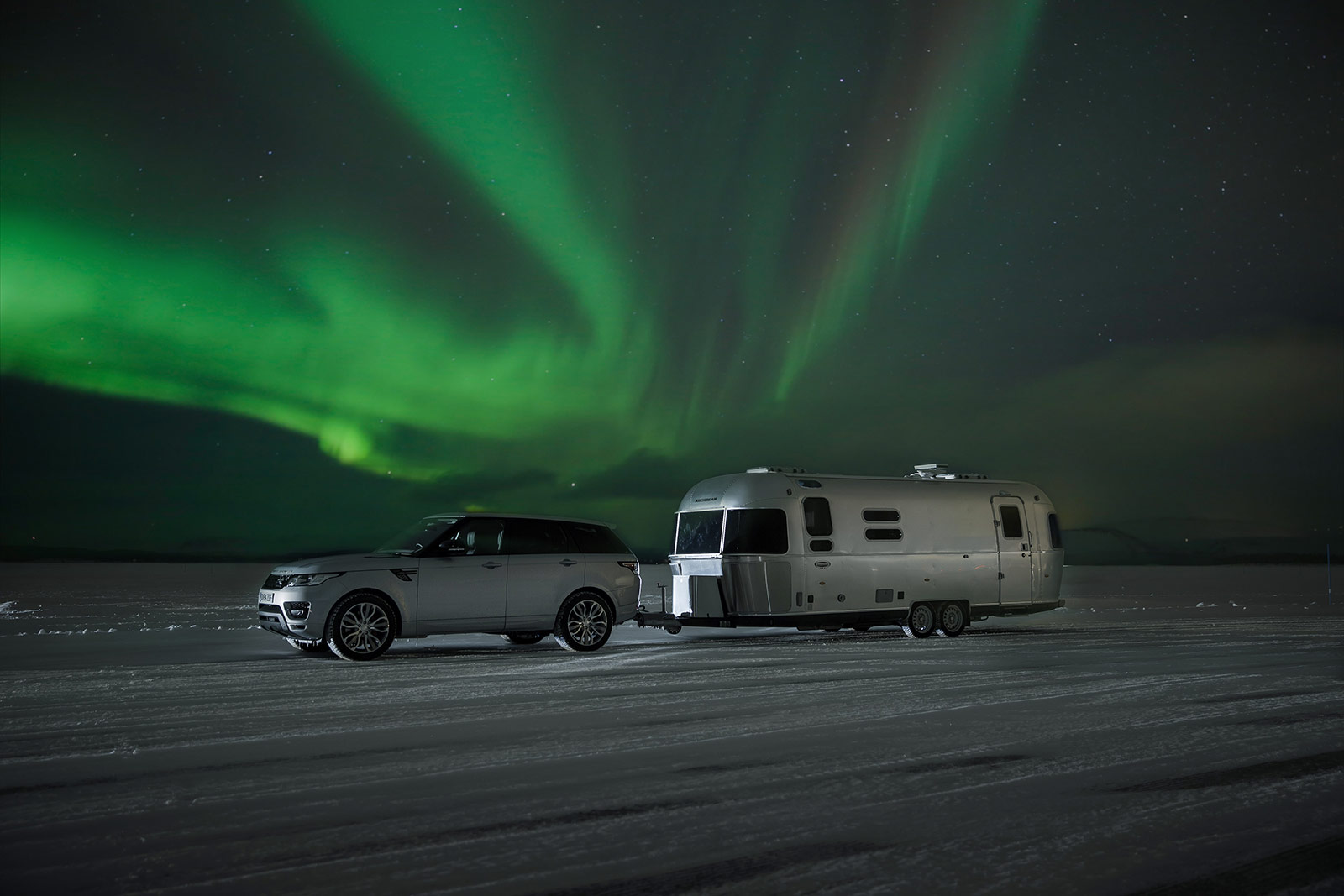 In a dramatic real world test of the Range Rover Sport Hybrid’s capability, the car towed the 13.1m long Airstream through some of the worst winter weather Scandinavia has experienced in living memory. Gales, record snow depths and freak icy road conditions tested crew, car and trailer to the extreme.