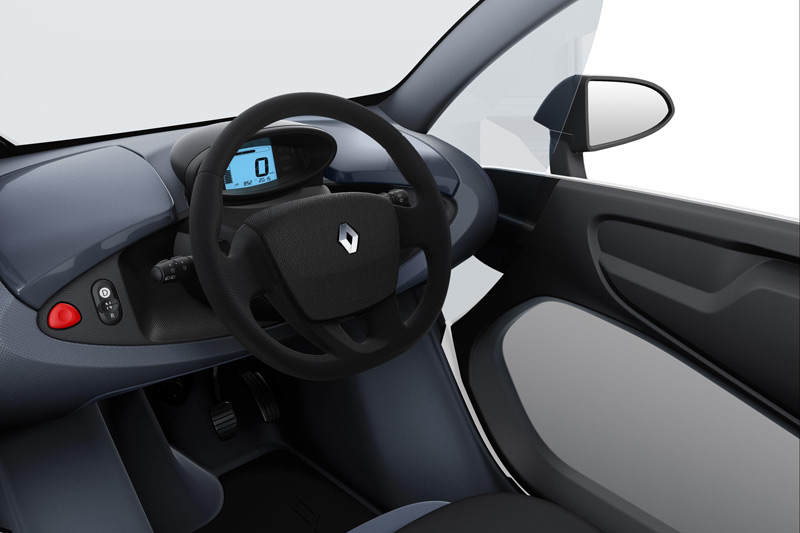 The curvy, semi-open design, with wheels placed outboard from the body, is distinctive and highly practical. The large, curving windscreen, with narrow pillars, gives the driver an excellent view and Twizy’s low centre of gravity and disc brakes all-round give secure stopping performance and driving stability. Scissor doors are optional, along with a Clear Skyroof. From October 2012, accessory windows which can be fitted or removed in minutes, will also be available, to give added protection from the elements.