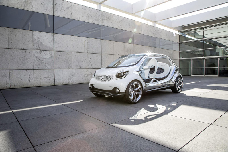 “The smart fourjoy is a study that successfully translates the unique design and the urban driving fun of the smart fortwo to an extremely compact four-seater. Numerous details of previous show cars that received very positive feedback have been incorporated in the fourjoy. The exterior proportions already reveal a lot about the appearance of our four-seater production smart which will be launched at the end of 2014 and will also enable families to travel together in a smart.”