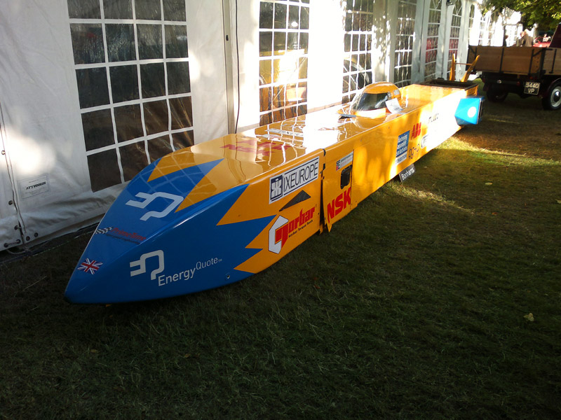Electric Streamliner World Land Speed Record Contender "E=motion" outside the marquee at Beaulieu ahead of it's sale