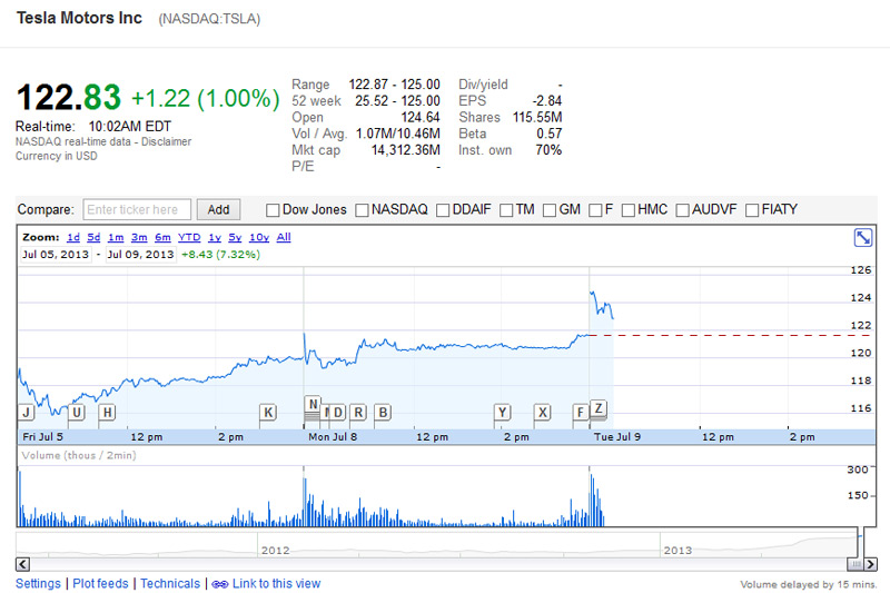 Tesla Motors (TSLA) has been added to the NASDAQ-100 Index, as well as the NASDAQ-100 Equal Weighted Index – commencing at the start of trading on 15th July 2013. Incredibly, Tesla Motors replaces the huge corporation Oracle (ORCL), which is in turn joining the New York Stock Exchange.