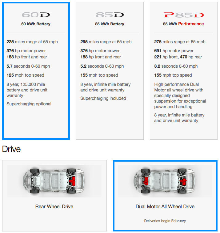At present, UK pricing is yet to be announced but will be made available imminently. However, the US pricing is simple enough to follow as the all wheel drive option costs $4,000 extra for the 60 and 85 models. However, the P85 requires a not insignificant $14,600 extra. Pricing is as follows: