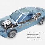 Other hybrid components include the 55 hp synchronous electric motor, the hybrid-spec eight-speed automatic transmission, a lithium-ion high-performance battery and power electronics underpinning intelligent energy management.