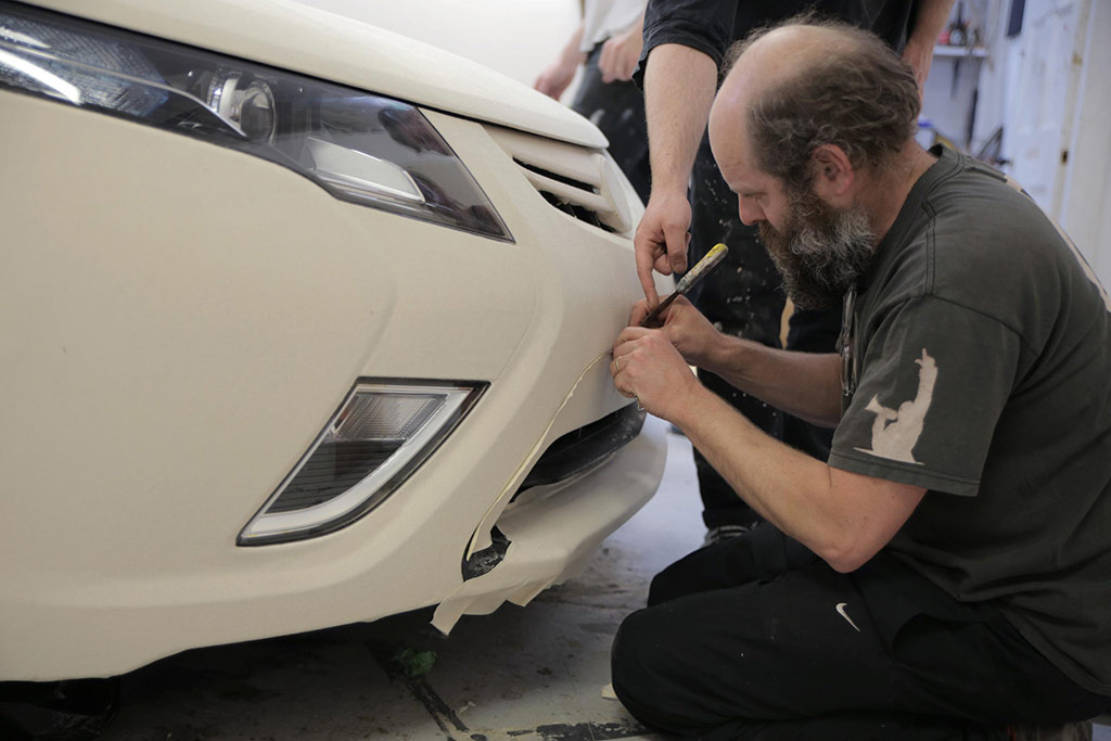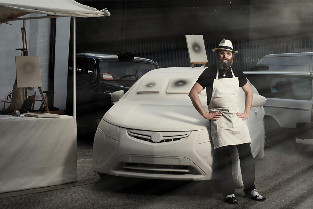 “The idea was to completely wrap the Vauxhall Ampera in canvas and then let nature take its course so the car in a way becomes a painting. I loved the idea of using the car as a way to reflect society and our environment.”