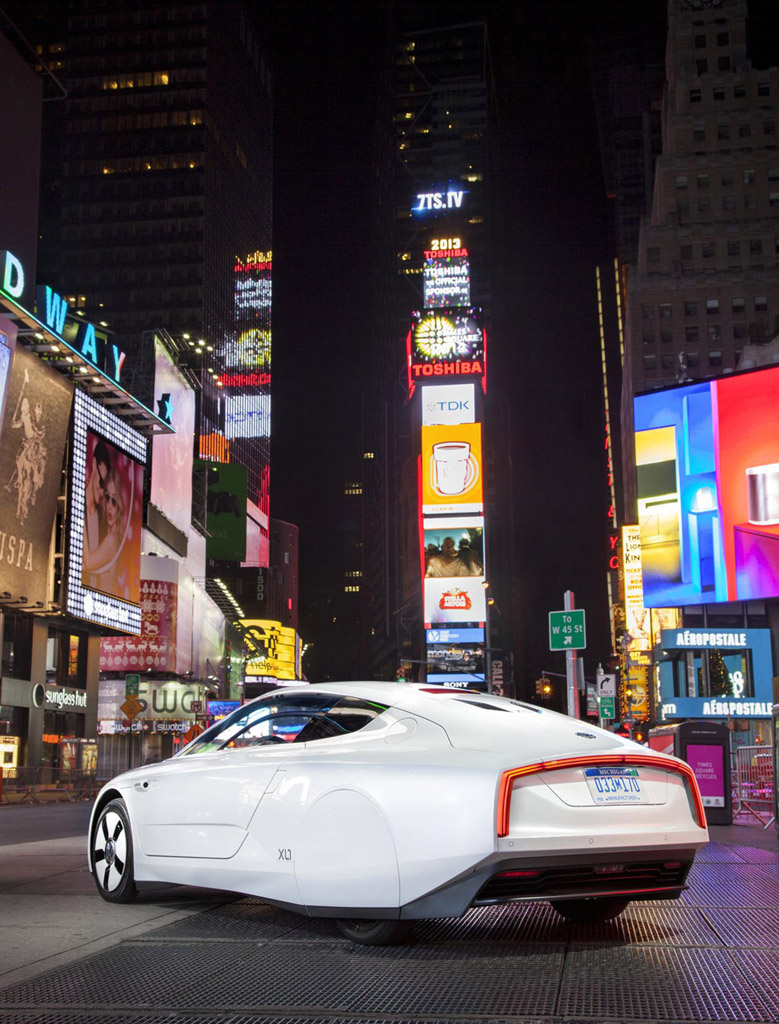 Not news as such, more an excuse for some interesting photos, Volkswagen’s superb hybrid XL1 supercar (not in the speed sense but in the technology stakes it certainly is) hit the streets of New York.