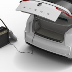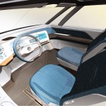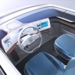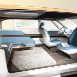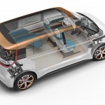 The 101 kWh flat Li-ion battery is integrated into almost the entire vehicle floor and powers two electric motors, one to drive each axle. The front and rear motors power all four wheels and provide BUDD-e with a top speed of 93 mph. Like today’s electric vehicles, the BUDDE-e offers several levels of plugged-in charging with the added benefit of cordless inductive charging.